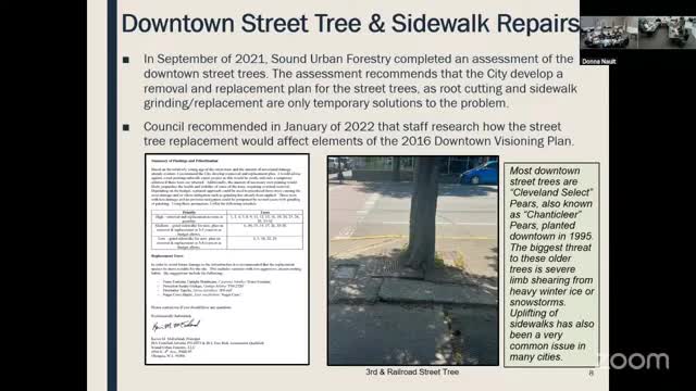 Council told downtown street‑tree and sidewalk repair project will go to bid in September; some funding available
