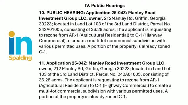 Commissioners approve rezoning of Manley Road parcel to C‑1 with five conditions after residents object