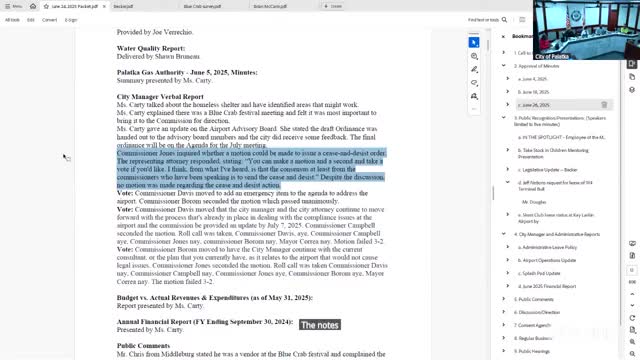 Palatka commissioners uphold termination of W‑4 airport lease, order uses verified