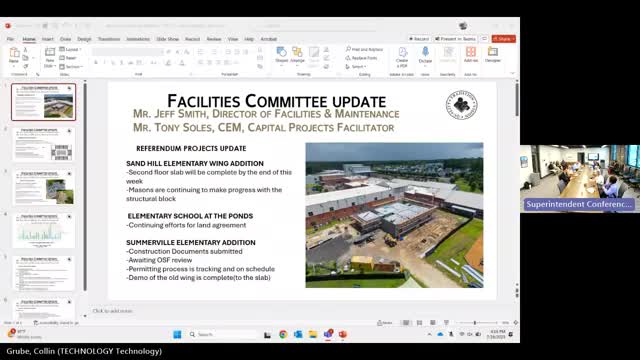 Dorchester 02 facilities staff report multiple school construction and maintenance projects on schedule; developer delays persist at Ponds site