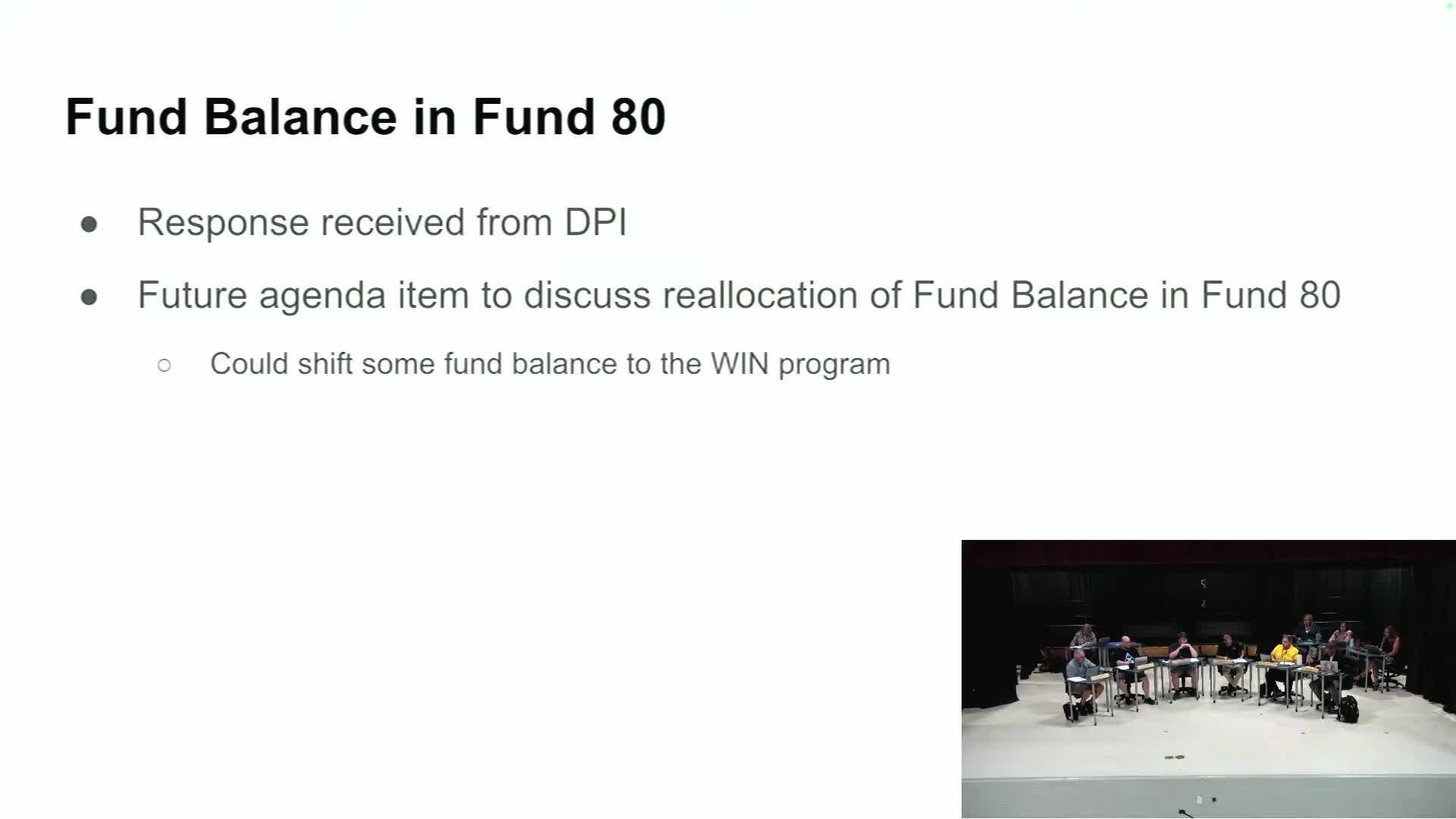 Federal funds for WIN program released; board to discuss use of Fund 80 and fund balance in August