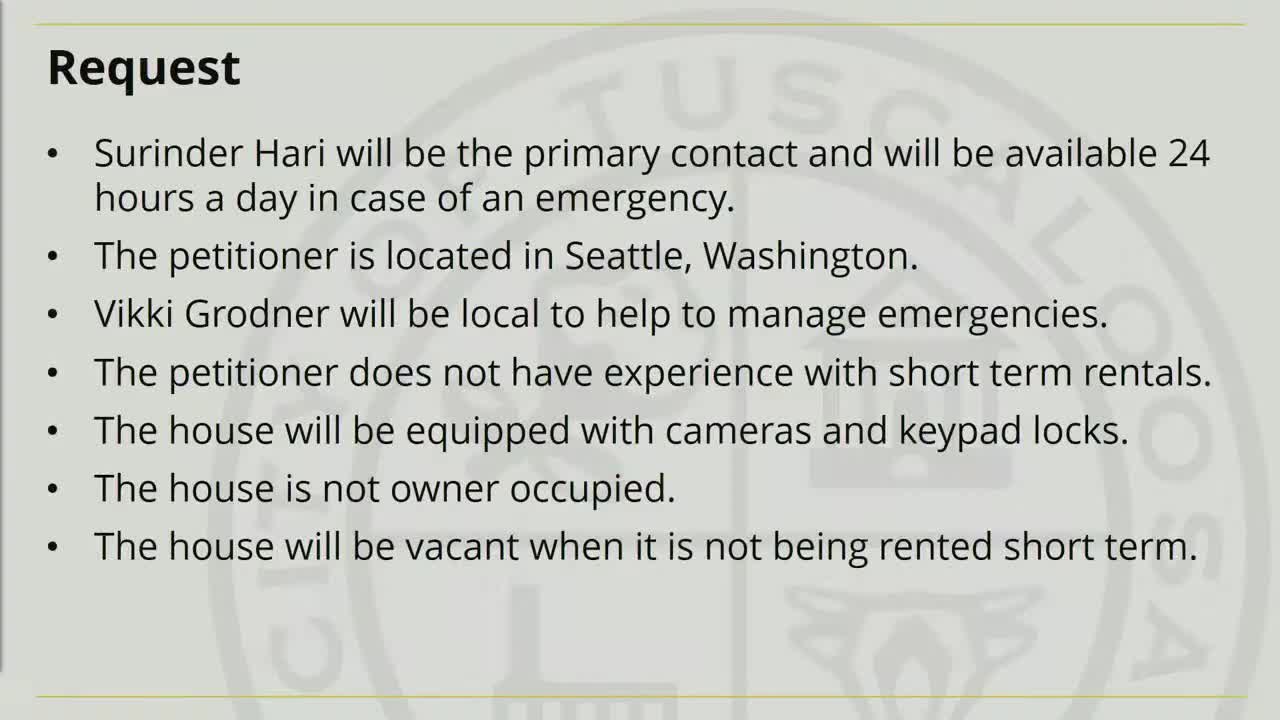 Short‑term rental approved at 1027 Myrtlewood Drive; owner cites prior local experience