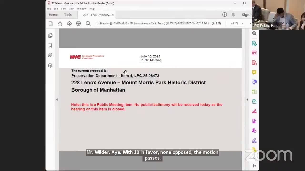 LPC approves rooftop bulkhead and authorizes flat sash with curved head moldings for curved bay windows at 228 Lenox Avenue