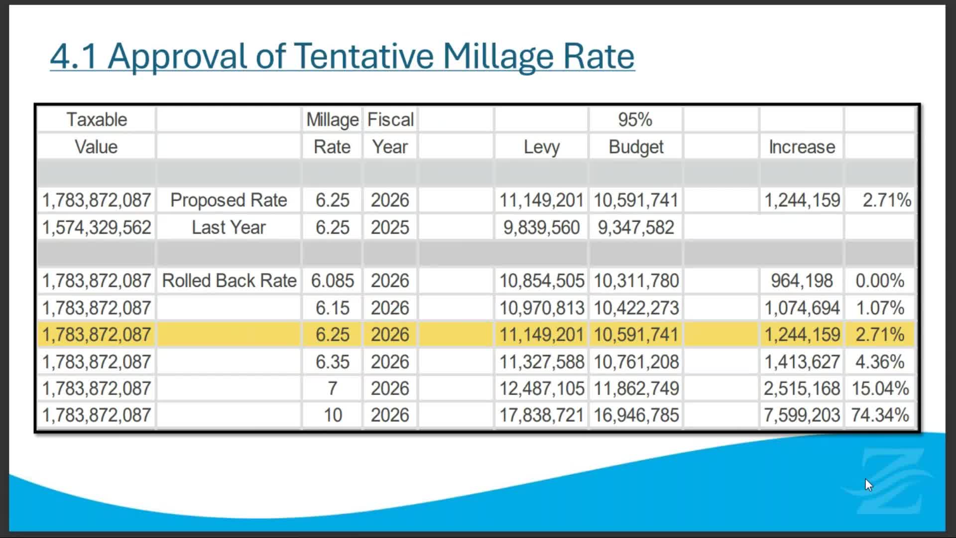 Council sets tentative millage at 6.25 mills; staff to prepare budget details