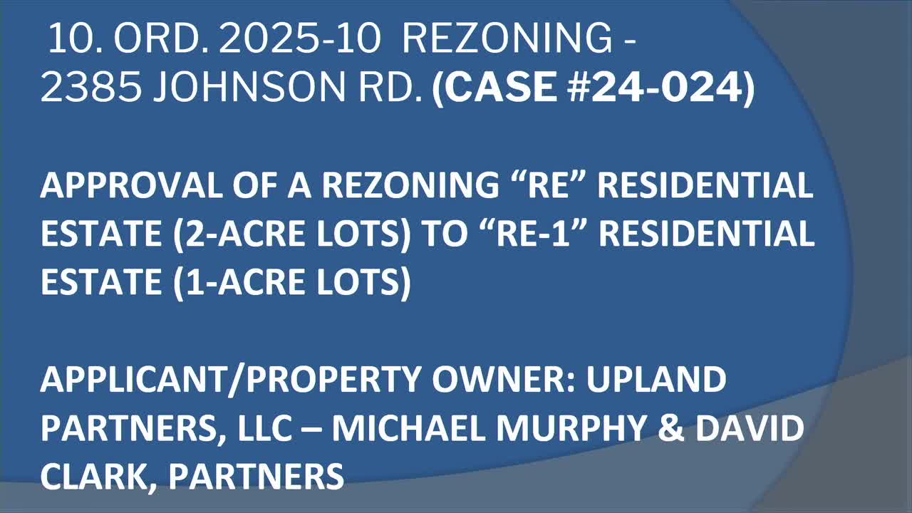 Board sets public hearing for rezoning of 2385 Johnson Road, keeps existing lake