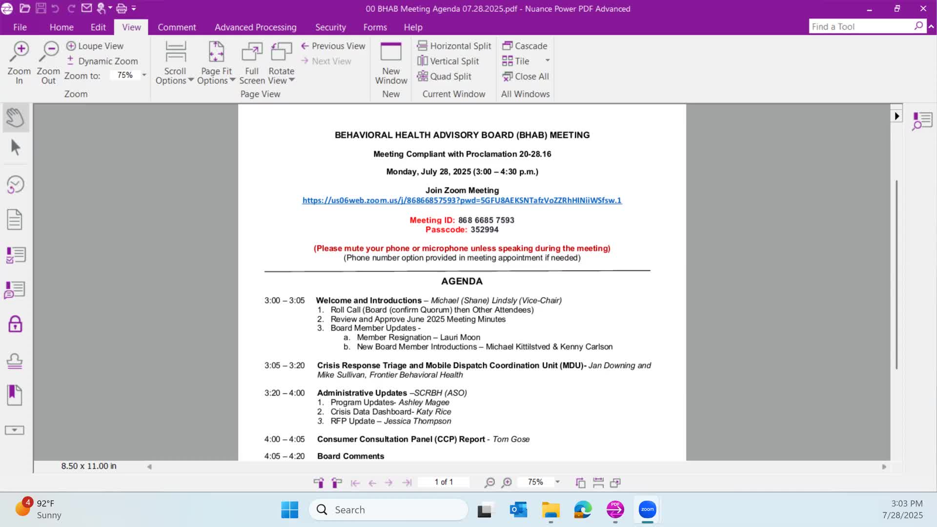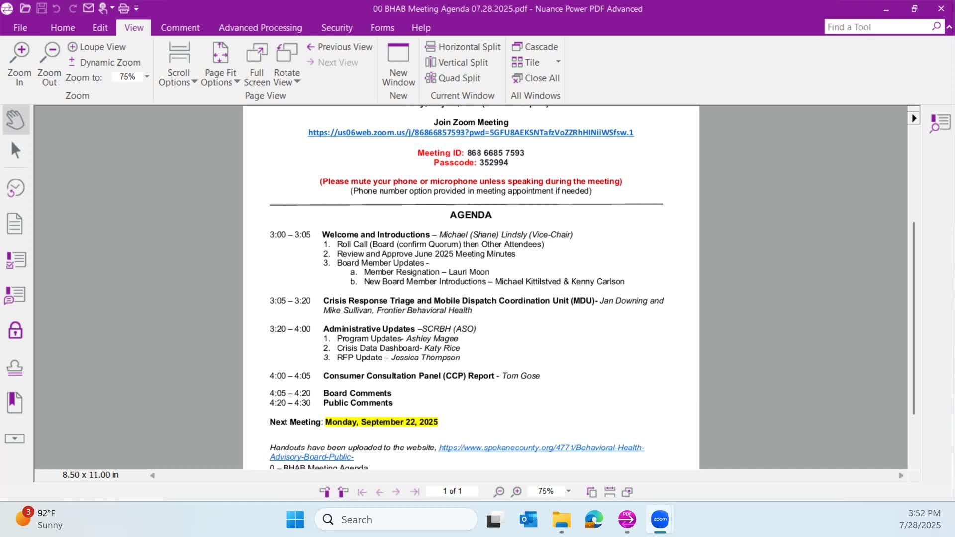 Consumer Consultation Panel reviews budget, events and STARS sobering‑triage program