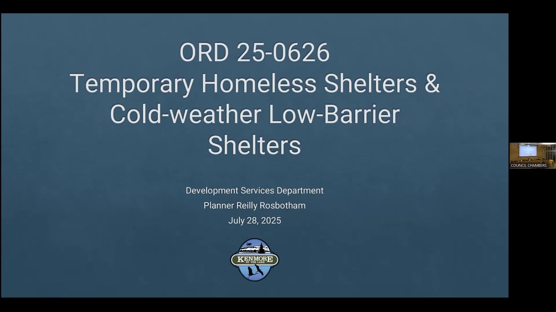 Kenmore staff to gather regional guidance before revising code on temporary and cold‑weather shelters