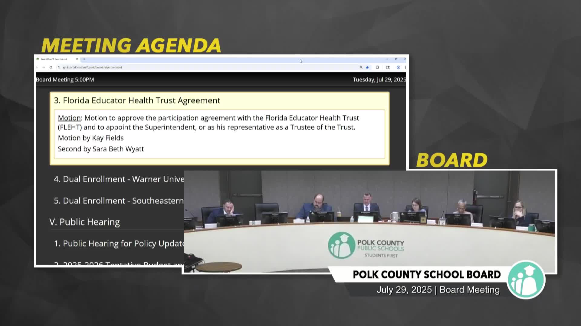 Board approves dual-enrollment agreements with Warner and Southeastern universities; two abstentions recorded