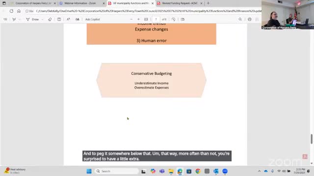 Harpers Ferry council adopts FY26 budget revision and reviews town finances, reserves