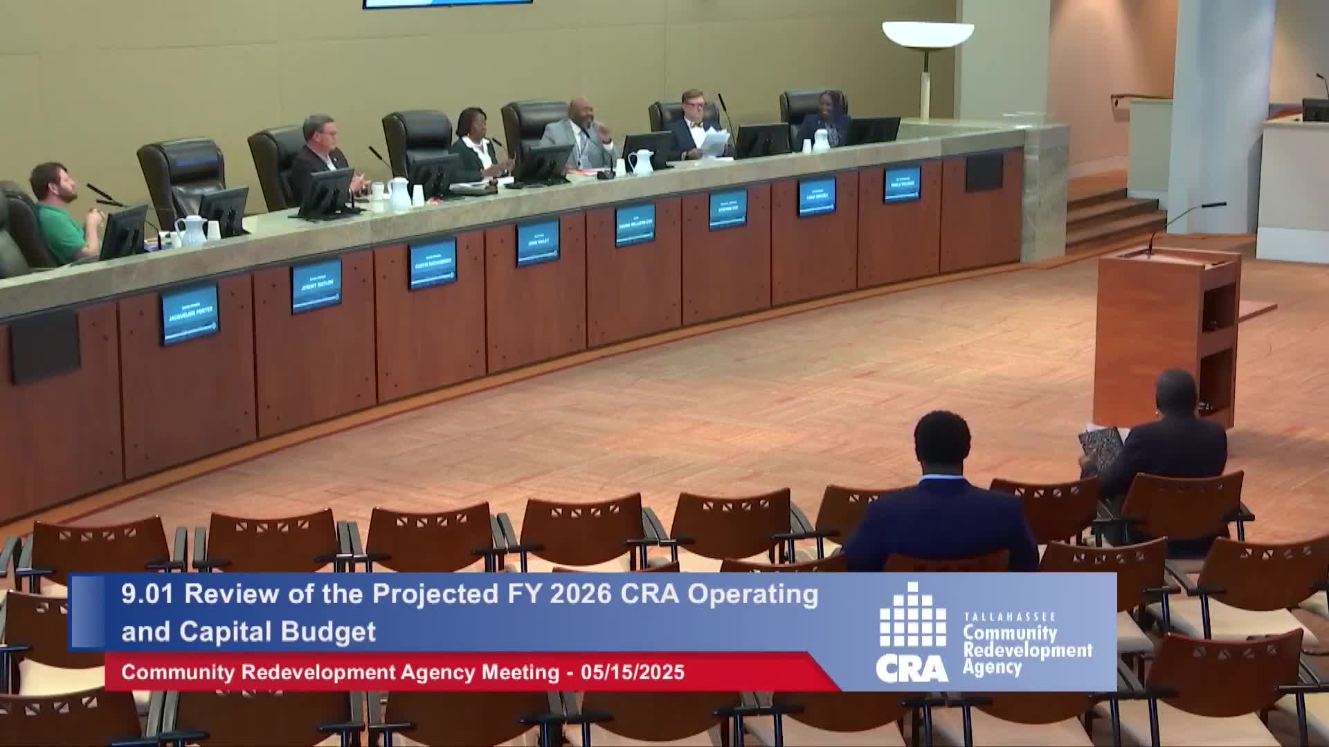 CRA presents fiscal-year 2026 budget projections; board accepts review and leaves allocations open