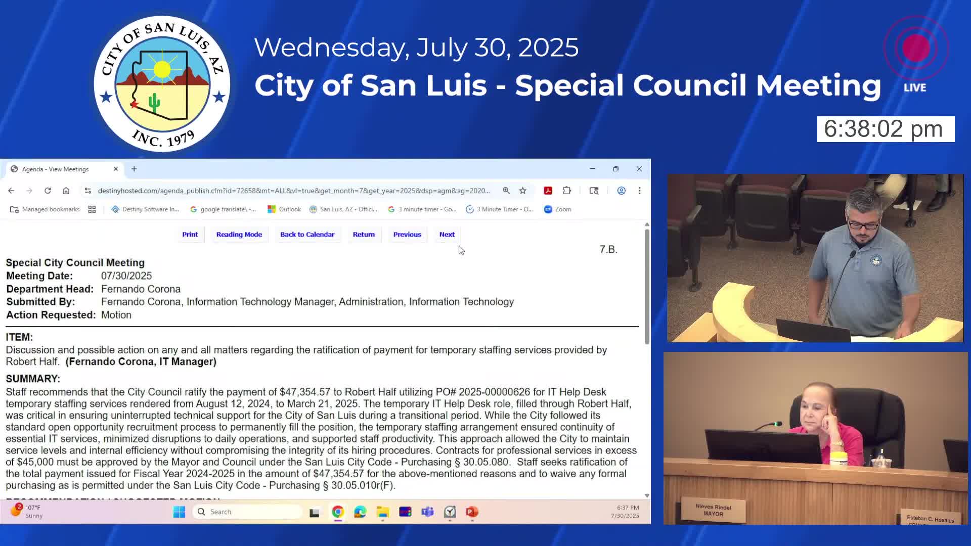 Council ratifies $47,354 payment for temporary IT help‑desk staffing