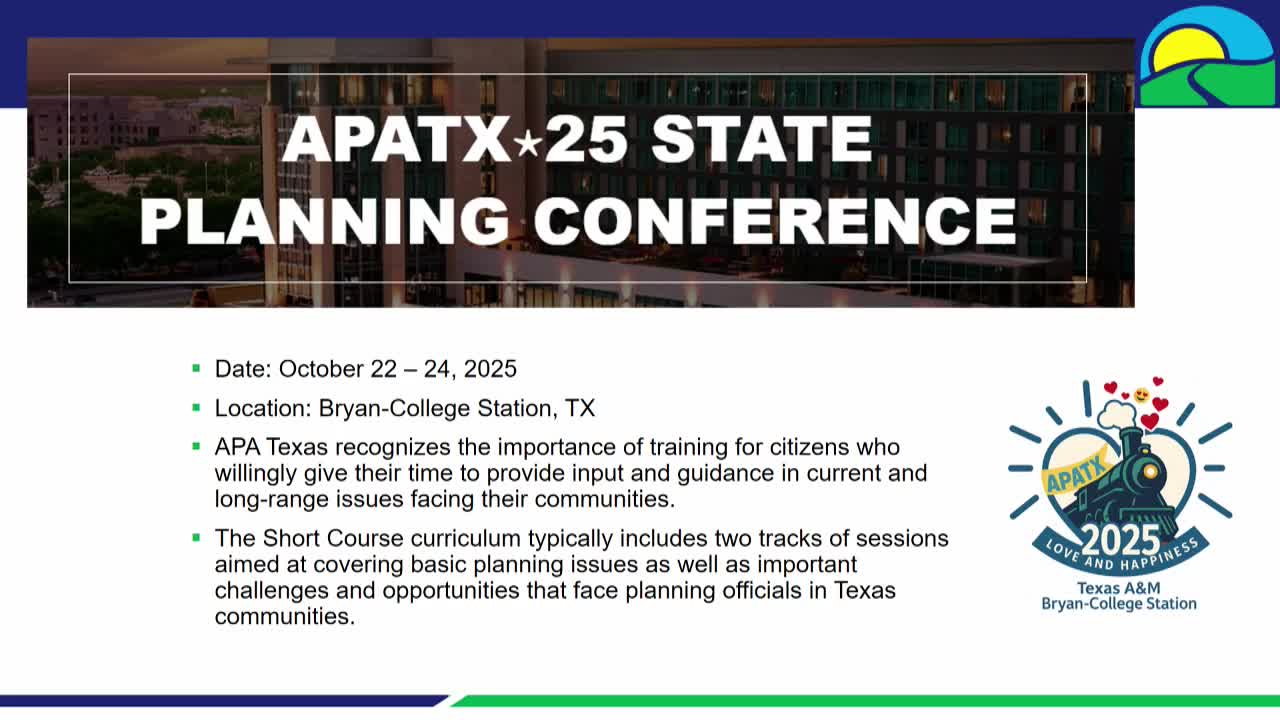 Sunnyvale staff invites board members to APA-Texas conference; city to cover registration