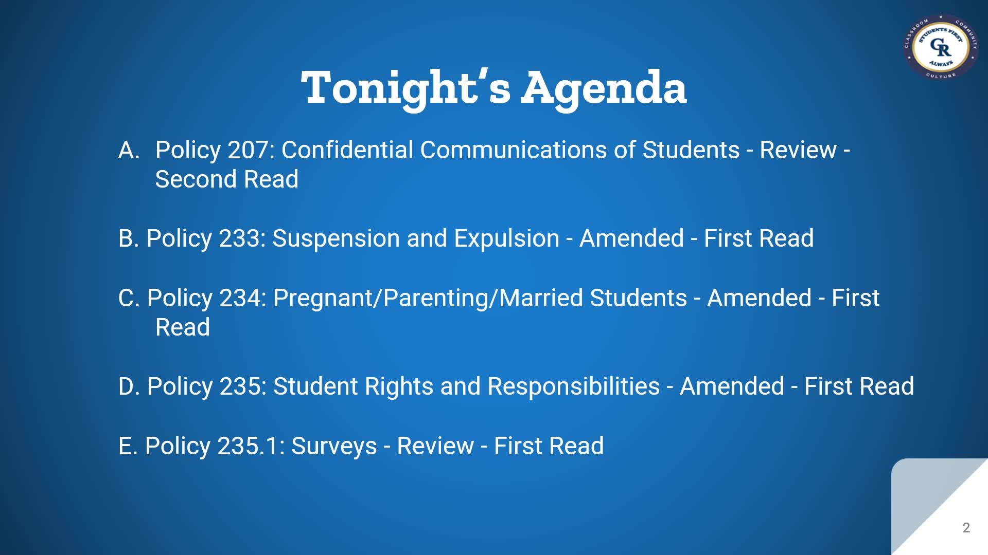 Policy committee places multiple policy reviews on consent first-read, retires duplicate foster-care policy