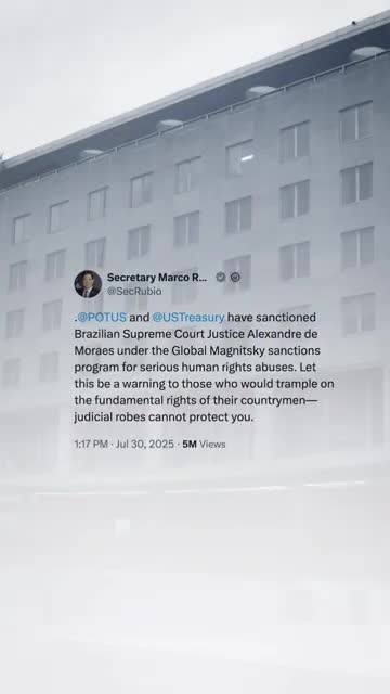 Broadcast says U.S. sanctioned Brazilian justice Alexandre de Moraes under Magnitsky program