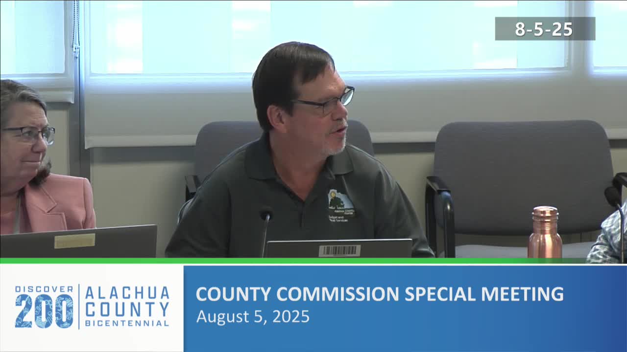 Alachua County reviews draft 2026 budget, millage and surtax outlook; commission approves agenda and a consent change order