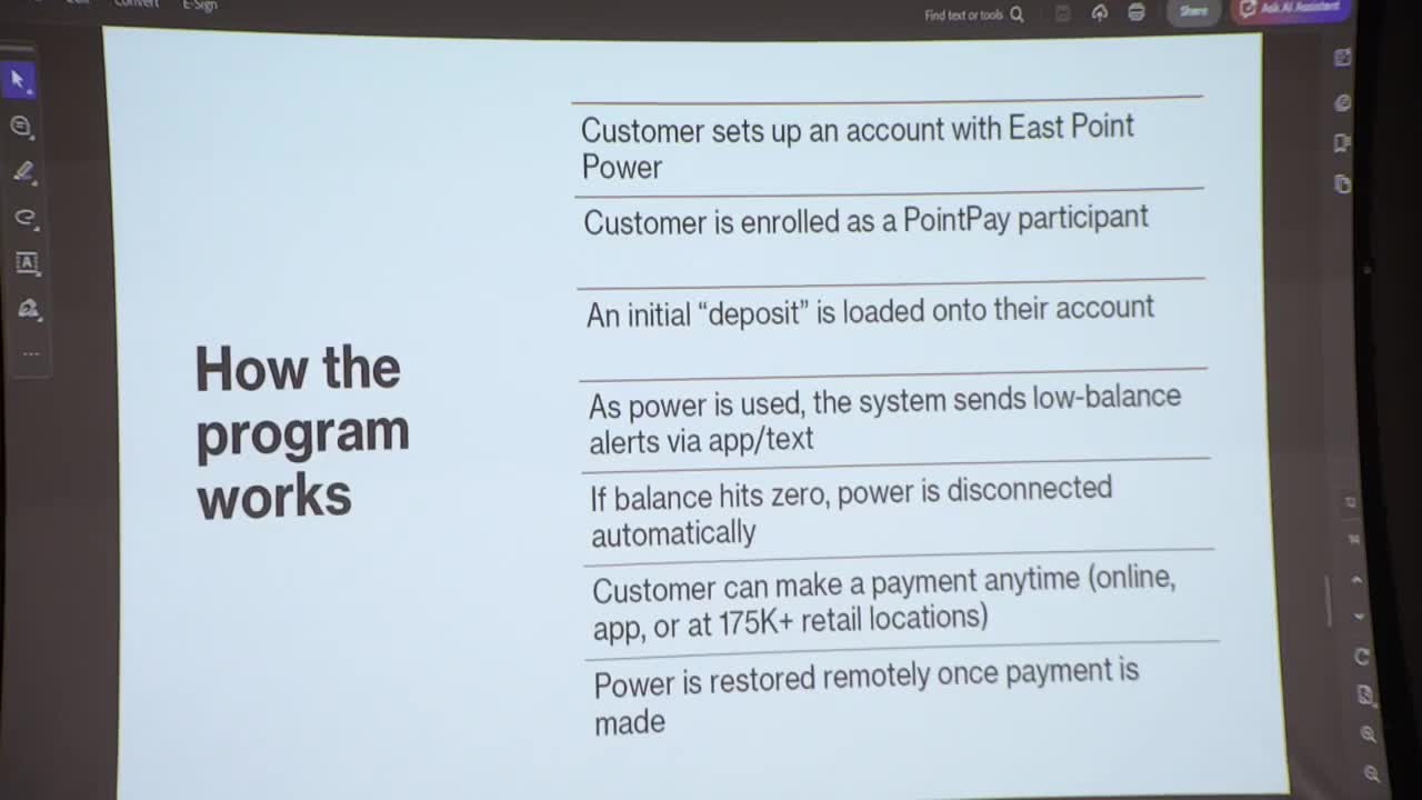 Council hears Acceleron—PointPay prepaid-utility pitch; staff asked to return with details