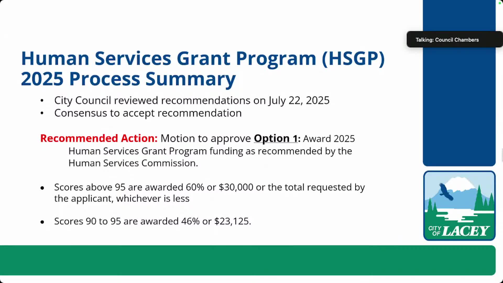 Council approves 2025 Human Services Grant awards using commission rubric; $300,000 to be allocated