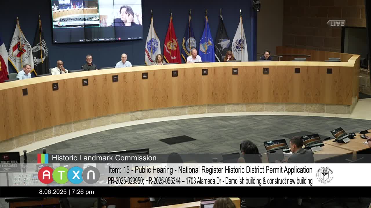 Commission releases demolition permit for 1703 Alameda Drive after review; applicant to document and comment on new plans