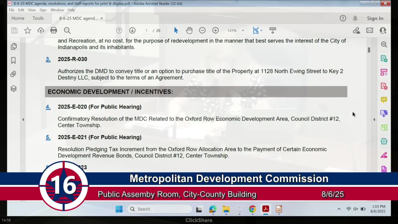 MDC confirms Oxford Row EDA and pledges TIF to bond payments for Center Township project