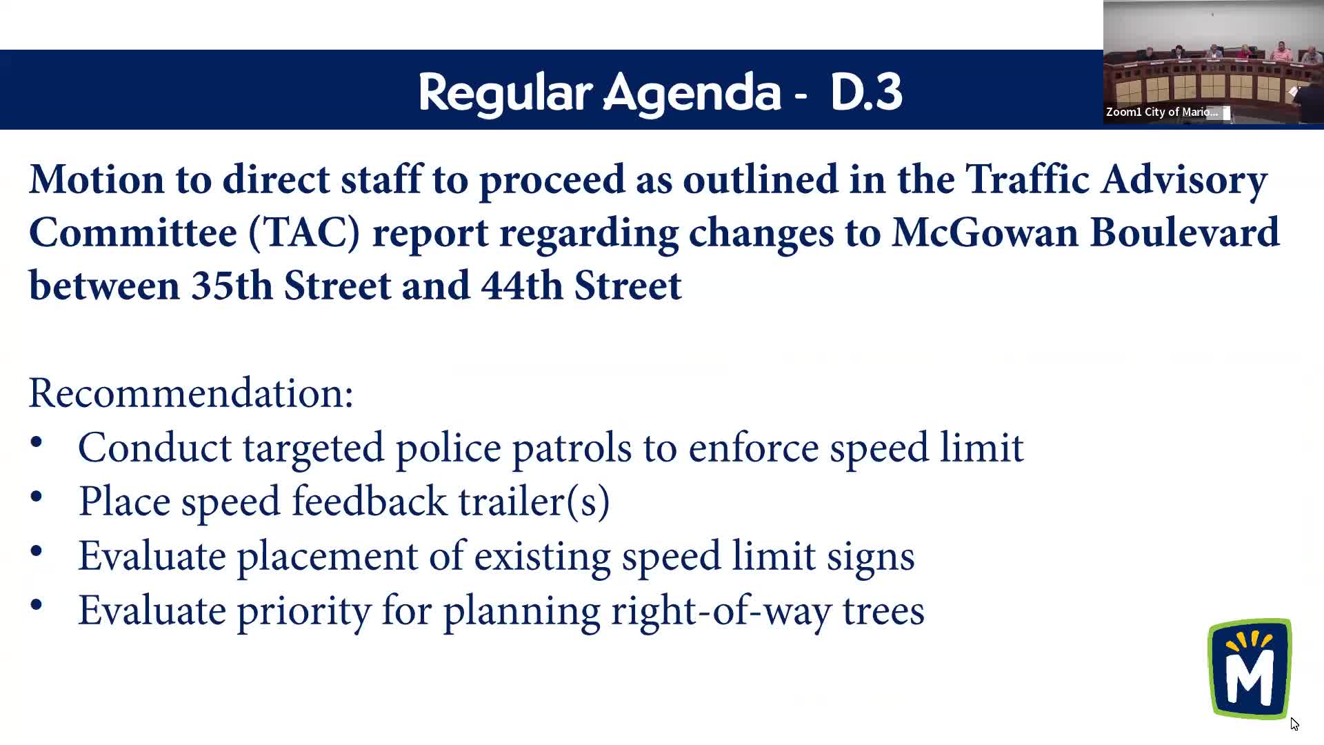 Marion council directs staff to pursue traffic calming, tree plantings and signage changes on McGowan Boulevard