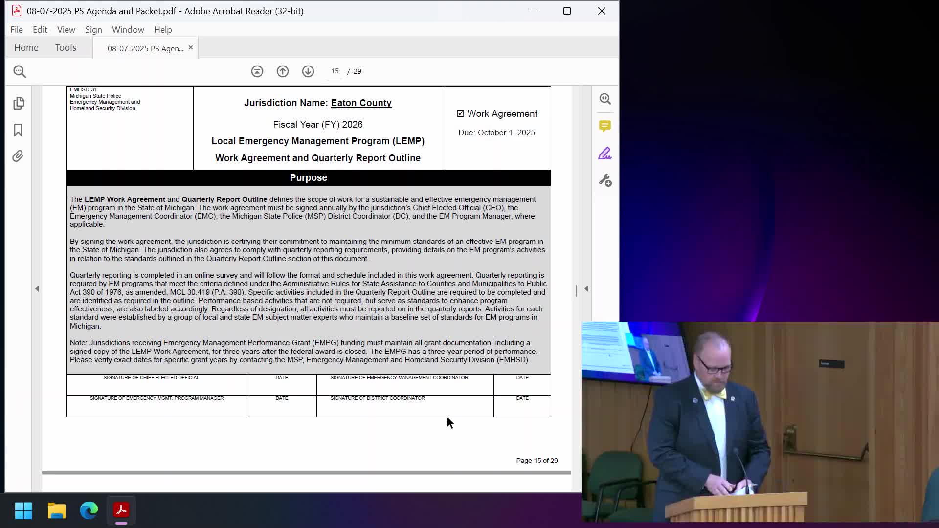 Eaton County committee approves EMPG initial work agreement to secure FY26 federal funds