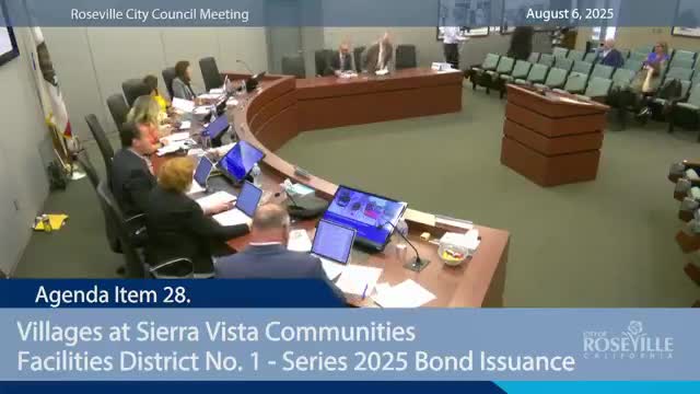Roseville council authorizes up to $6.7 million in special-tax bonds for Villages at Sierra Vista CFD