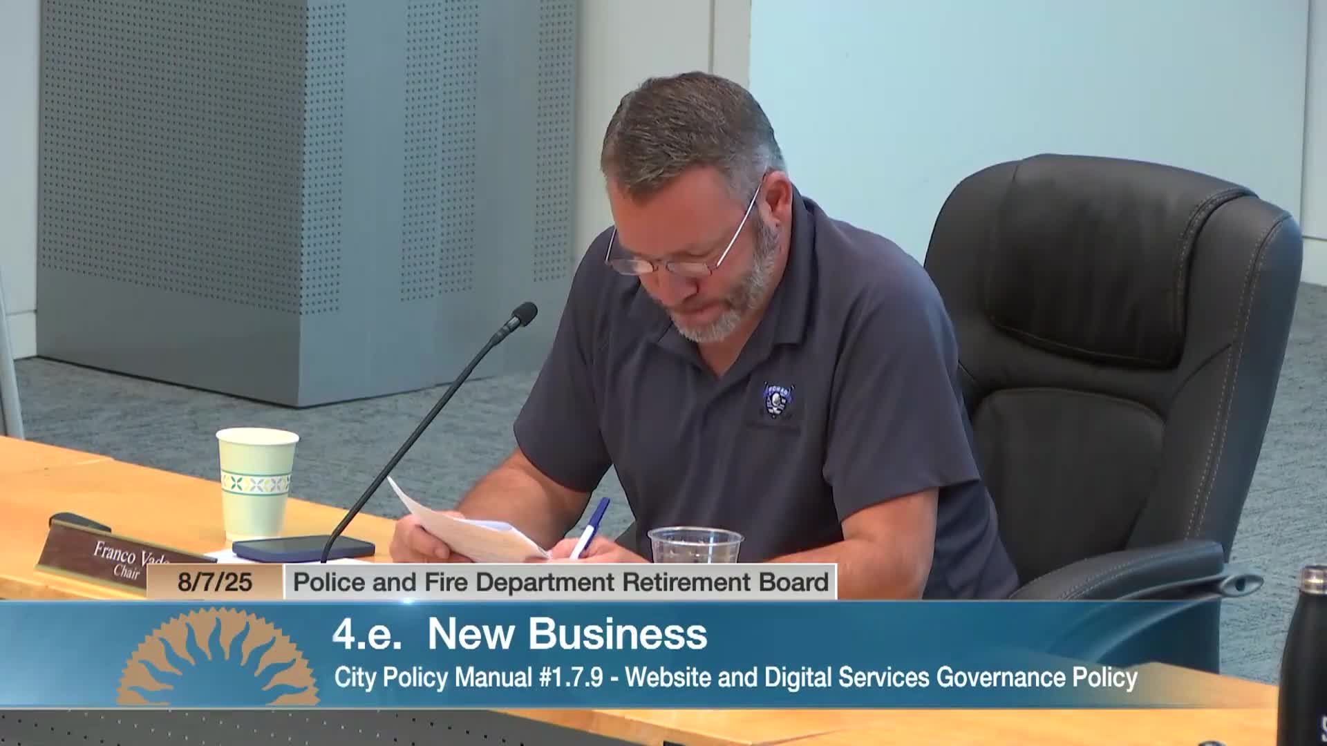Board accepts updated city web governance and data-governance policies; .gov domain requirement noted