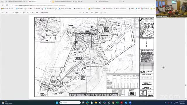 Owners present pre‑application plan for five‑lot minor subdivision off Old Hopkins Cemetery Road; board flags wetlands, septic encroachment and private‑road/HOA