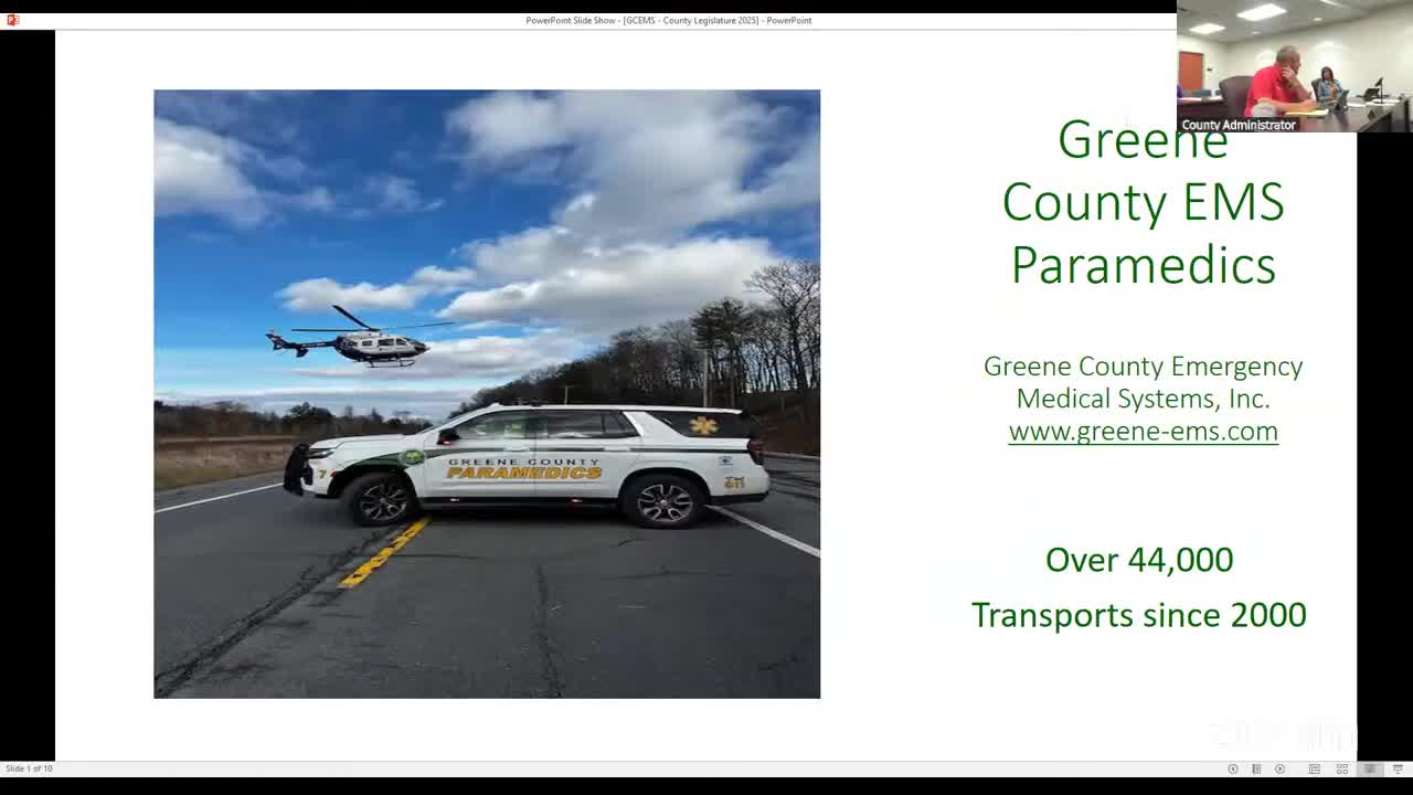 Greene County EMS presents equipment upgrades, response-time data and staffing needs ahead of 2026 contract renewal