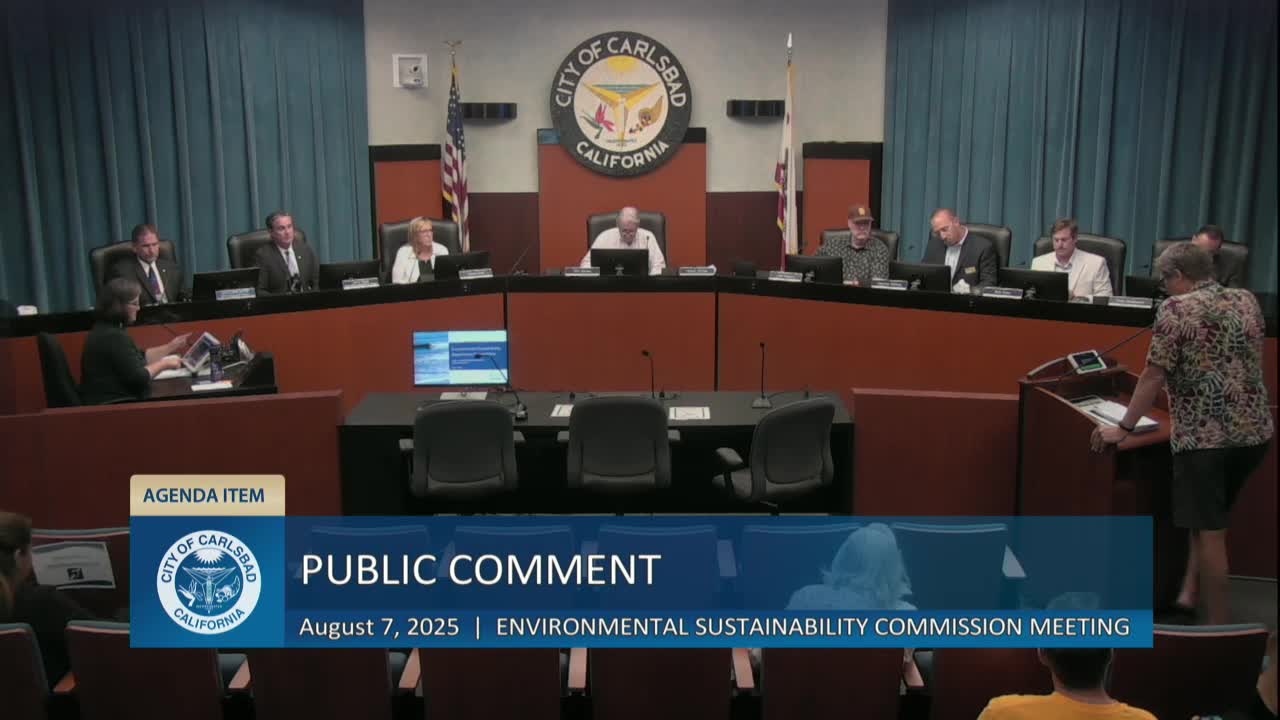 New Carlsbad environmental commission elects officers, hears department overview and begins work plan; public raises Ponto open‑space, beach concerns