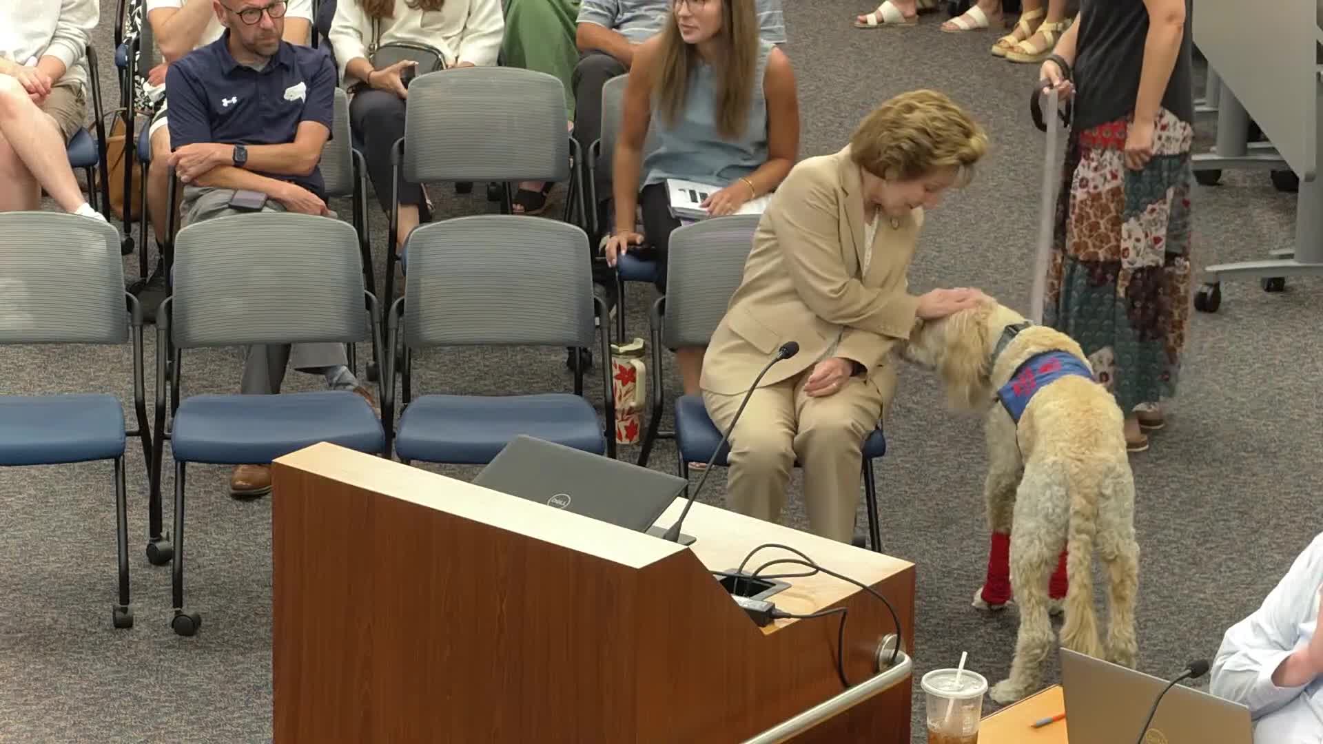 Board meets therapy dog at Pauline Central; first reading scheduled for consent