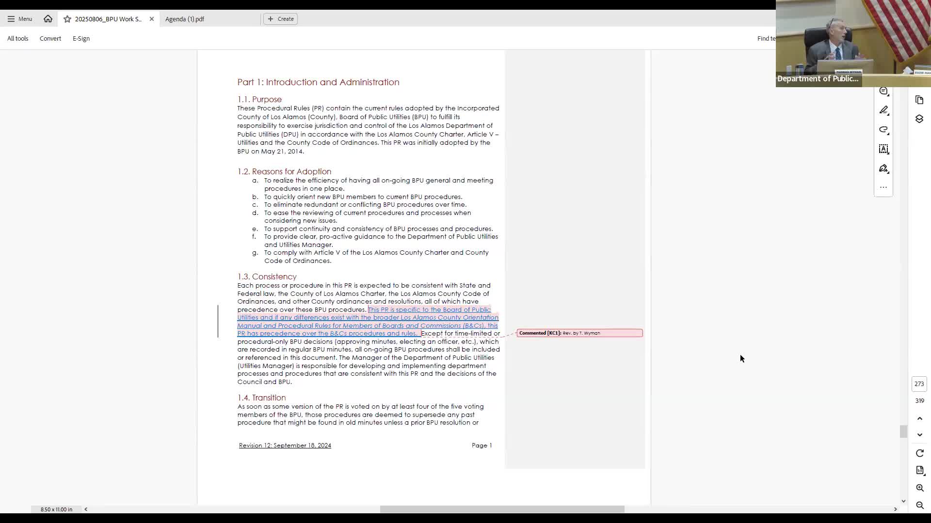 Board reviews minor updates to BPU procedural rules; discusses precedence, emergency meetings and public‑comment scope