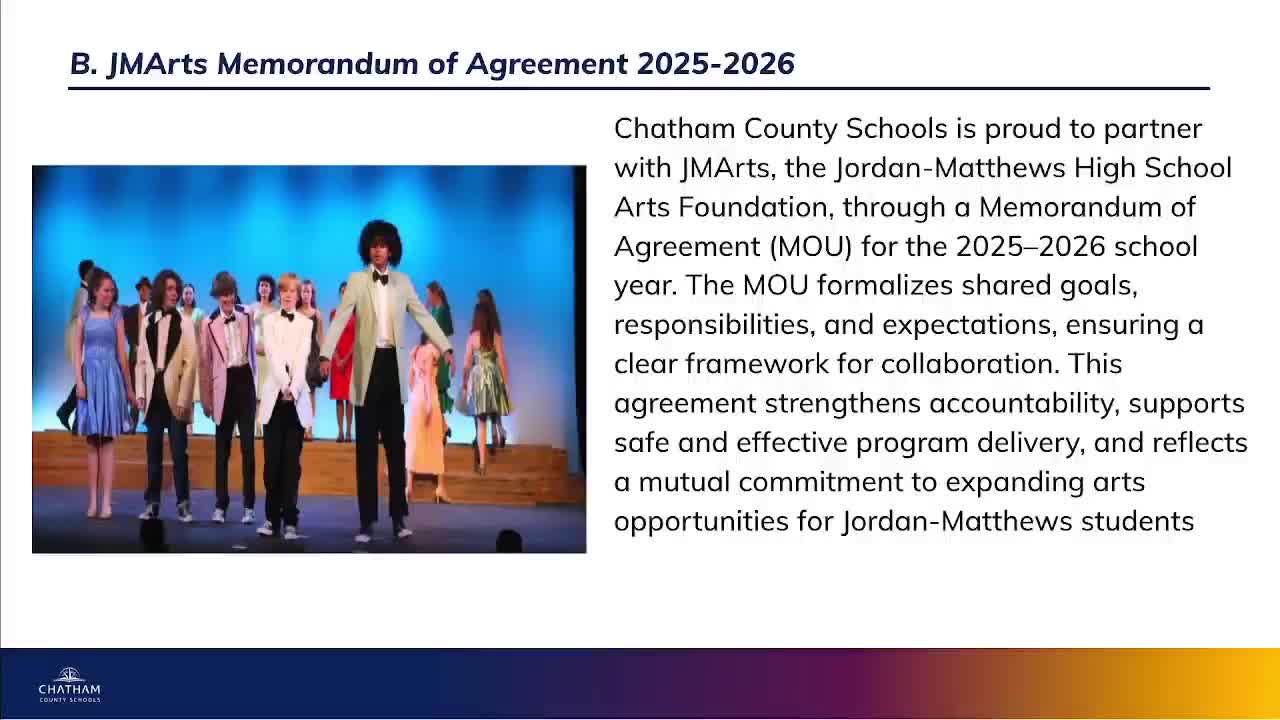 Board approves memorandum of agreement with JM Arts to expand arts programming at Jordan Matthews
