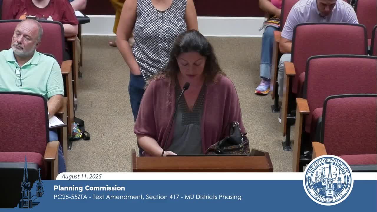 Commission continues mixed‑use phasing text amendment after residents and developers clash over oversight and notice
