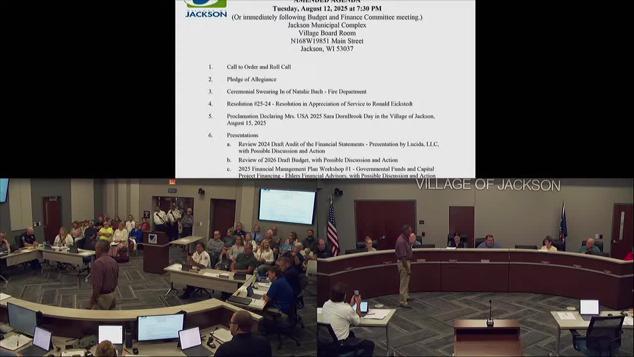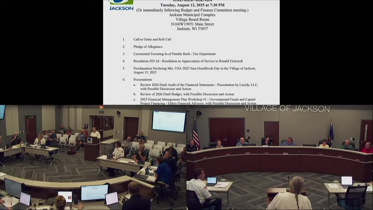 Village of Jackson reviews 2026 draft budget and 10-year financial plan; board asks staff to target about 3% tax-bill impact