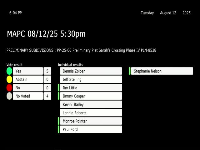 Commission grants preliminary plat approval for Sarah's Crossing Phase 4 — 54 lots on 15 acres