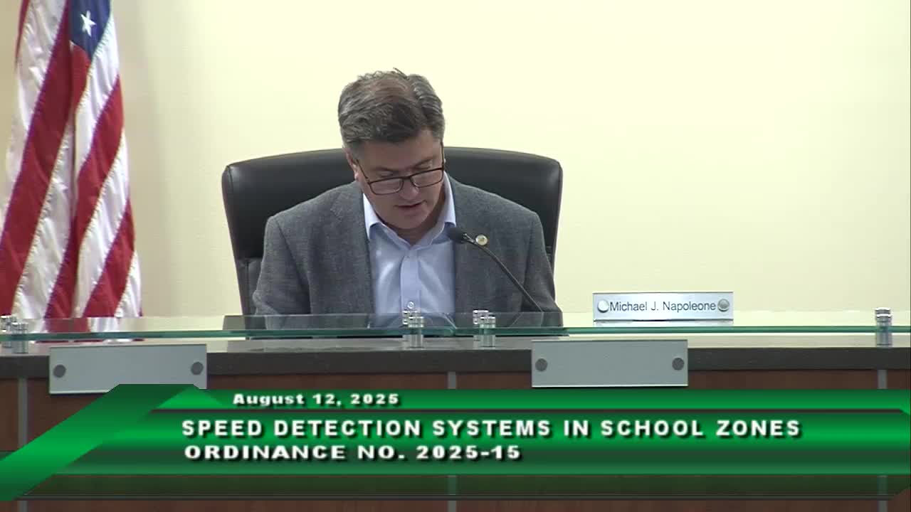 Council adopts updated school‑zone speed detection ordinance; clarifies enforcement and hearing process