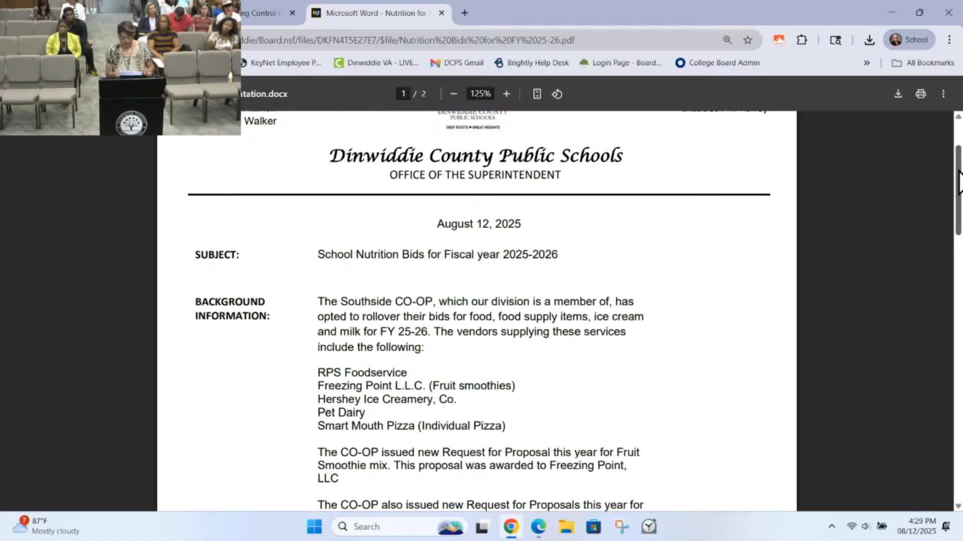 Dinwiddie County School Board approves crisis plan, nutrition contracts and several routine items