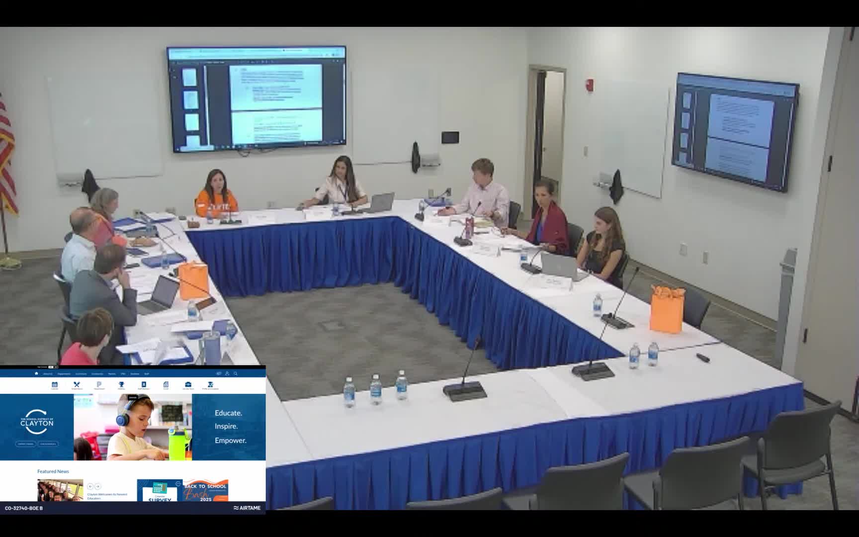 Clayton board adopts new device, discipline and board‑member policies; approves elections cooperation and consent agenda