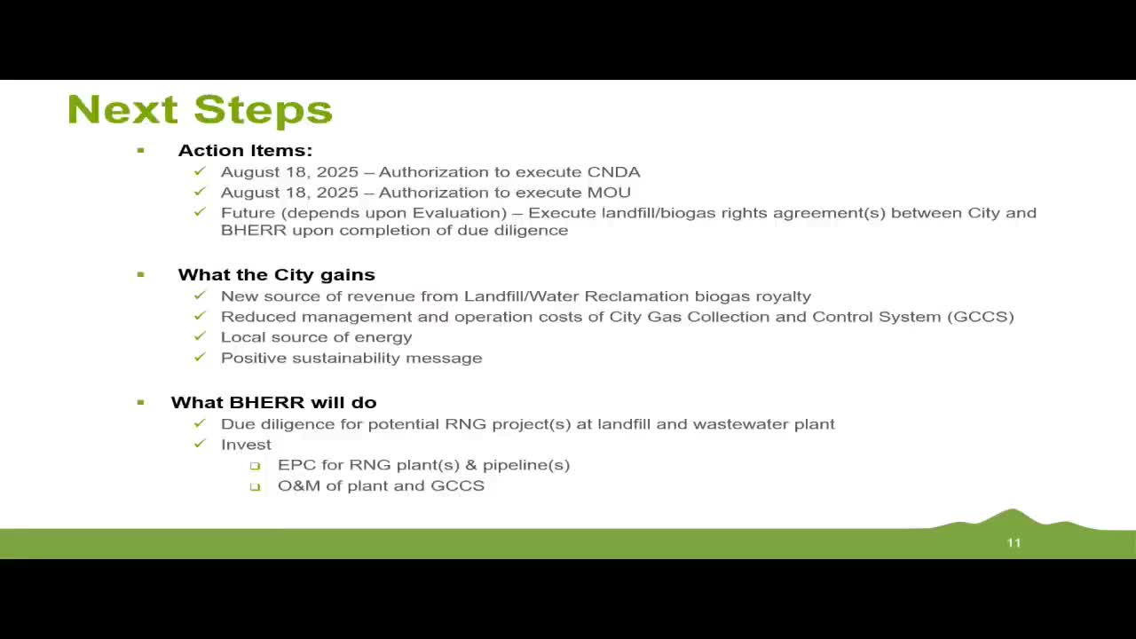 Council acknowledges Renewable Natural Gas evaluation with Black Hills Energy; MOU/NDA to be authorized