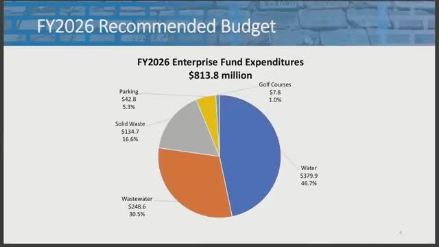 Finance staff tells council enterprise funds will fund major FY26 capital work; $3.5 billion projected debt through 2060