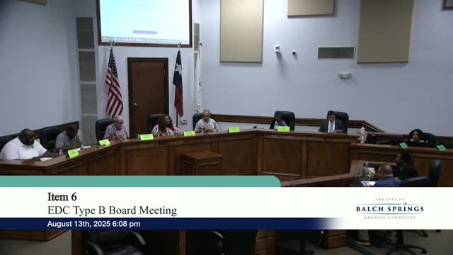 Balch Springs EDC board adopts FY 2025–26 budget, prioritizes Irvin Park field renovations