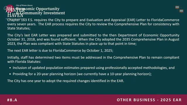 Staff briefs planning commission on required evaluation–appraisal report and likely 2050 planning horizon