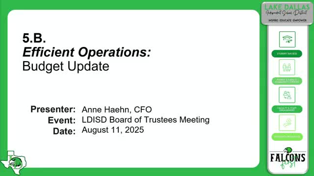 Lake Dallas ISD CFO presents budget update; board to publish proposed tax rate unchanged at 1.2552