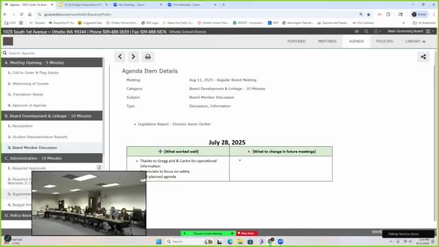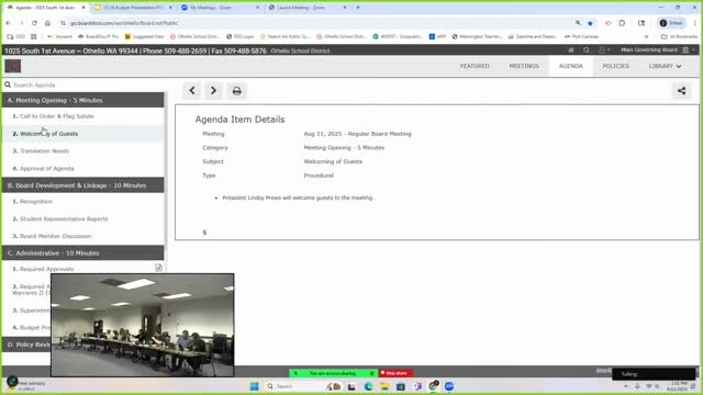 Othello board approves agenda and required items; early warrants pass with one abstention