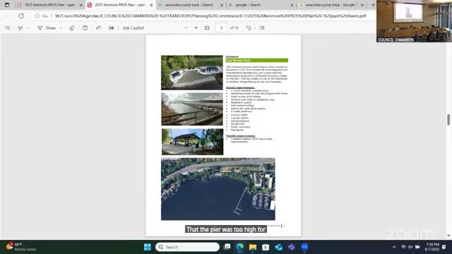 Kenmore planning commissioners review PROS plan update, request further benchmarks and Chapter 5 draft