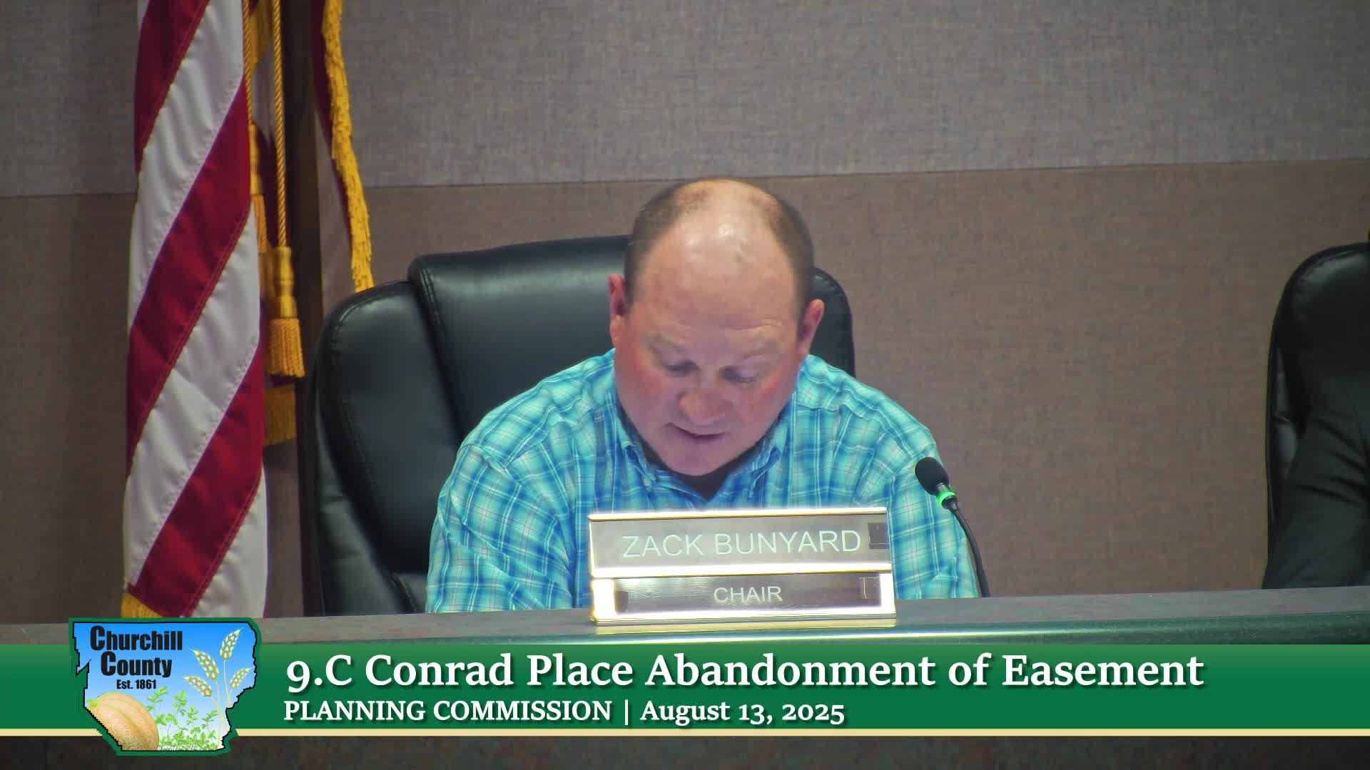 Commission recommends abandonment of unused 20‑foot irrigation easement on Conrad Place