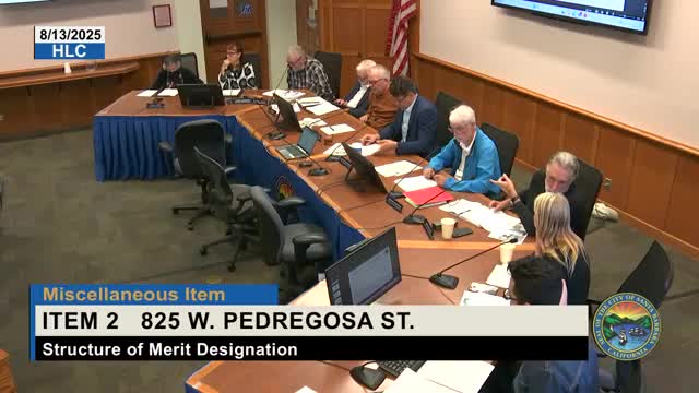 Historic Landmarks Commission designates 825 West Pedragosa Street a structure of merit