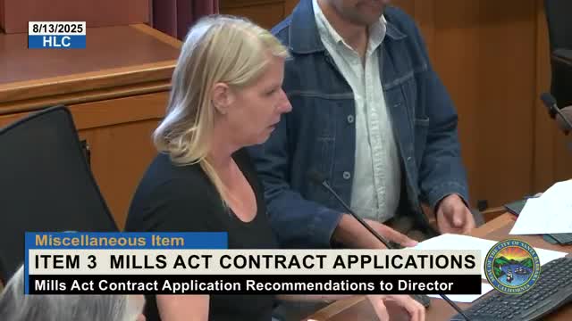 Historic Landmarks Commission forwards Mills Act contracts and exceptions; recommends several approvals