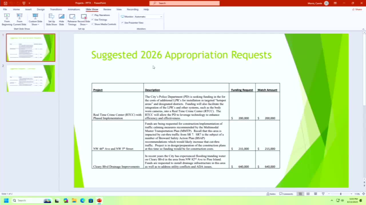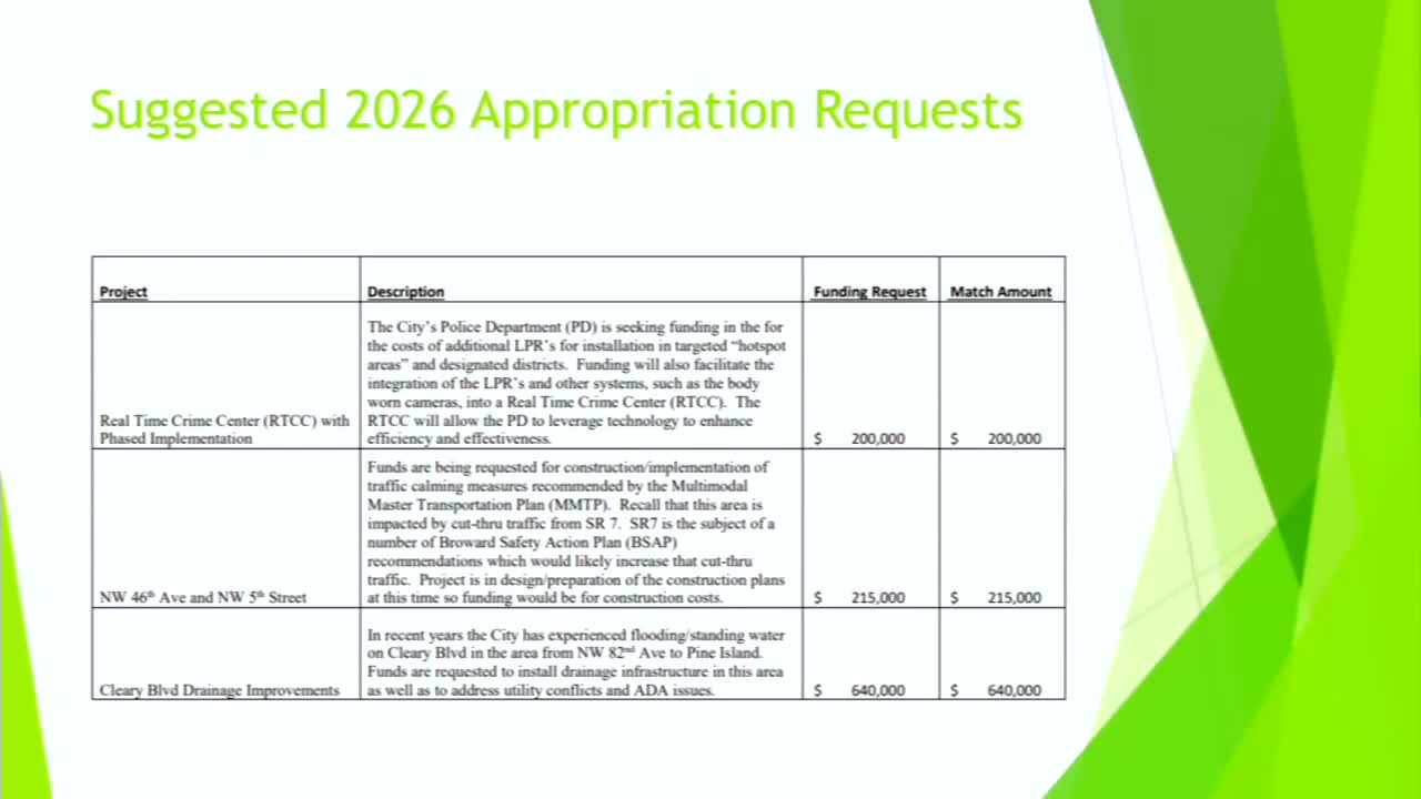 Plantation council prioritizes priority-state-appropriation requests including drainage and LPR/body-camera funding